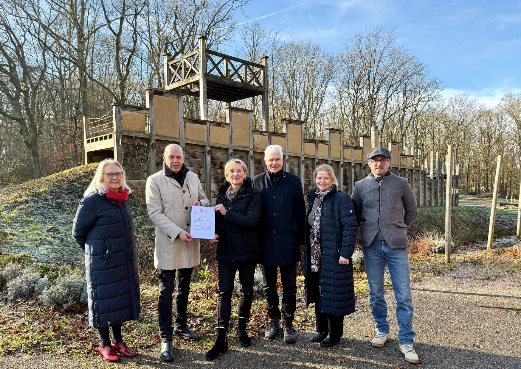Im Römerpark im Bergkamener Stadtteil Oberaden, dem ehemaligen Standort eines römischen Militärlagers, wird die Geschichte der Region lebendig. Nun wird ein neues Projekt das Bild des Parks bereichern: Die Rekonstruktion einer stattlichen Toranlage - das Nordtor. Die NRW-Stiftung fördert das Projekt mit bis zu 150.000 Euro. Bei einem Besuch in Bergkamen überreichte Dr. Ute Röder aus dem Stiftungsvorstand am 9. Februar 2026 die Förderurkunde an Jochen Baudrexl, Vorsitzender des Vereins der Freunde und Förderer des Stadtmuseums Bergkamen e. V.