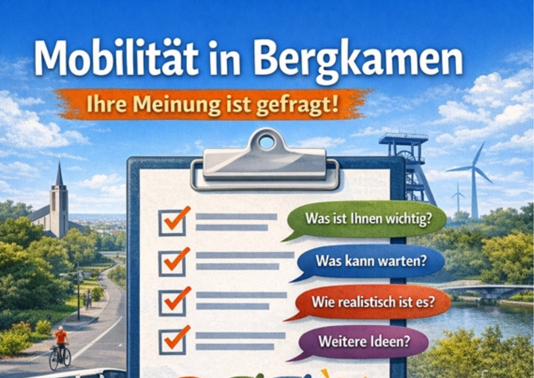 In den vergangenen Monaten wurden im Zuge einer umfassenden Bestandsaufnahme und Analyse sowie durch verschiedene Beteiligungsformate zahlreiche Ideen und Projektansätze zur Weiterentwicklung der Mobilität in Bergkamen erarbeitet. Aufbauend auf diesen Ergebnissen wurden konkrete Maßnahmen entwickelt, die nun durch die Bevölkerung bewertet und priorisiert werden sollen.