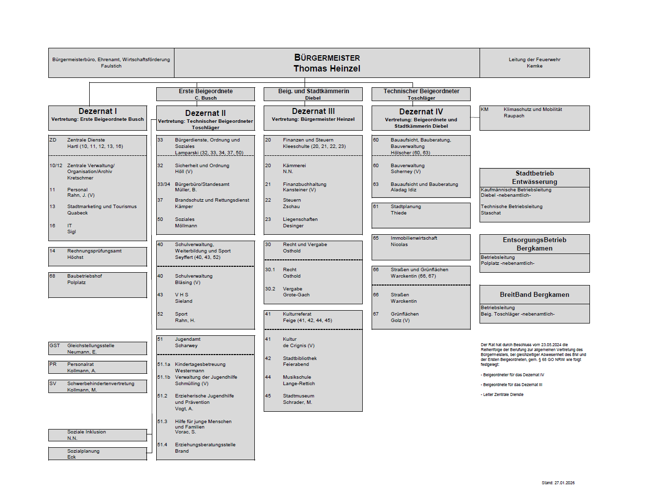 Hier finden Sie den Organisationsaufbau der Stadtverwaltung Bergkamen sowie die Lebensläufe der Mitglieder des Verwaltungsvorstandes.