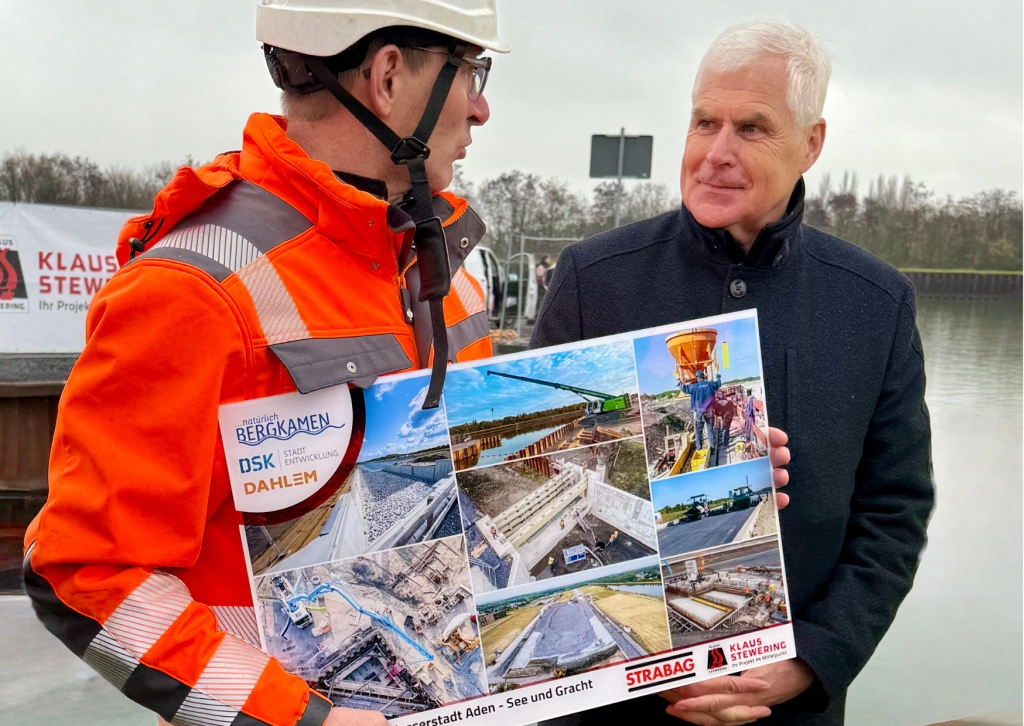 Seit Juli 2023 führt die ARGE aus den Firmen Strabag und Stewering die umfangreichen Arbeiten zum Bau des Adensees sowie der begleitenden Gracht im Herzen der Wasserstadt Aden aus. Seit dem 10. November 2025 wird der See über eine Wasserentnahme aus dem Datteln-Hamm-Kanal befüllt. Bislang war der Kanal durch ein Verschlussbauwerk vom Adensee getrennt. Dieses Bauwerk ist Bestandteil der wasserrechtlichen Genehmigung und dient im Havariefall dazu, See und Kanal voneinander abriegeln zu können.